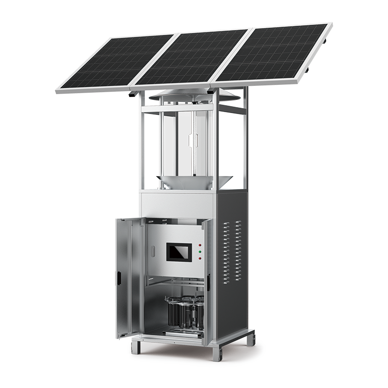 7、接蟲器自動轉(zhuǎn)換,八位自動轉(zhuǎn)換系統(tǒng),保證8個時間段誘集到的昆蟲不混淆。
