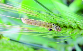 黏蟲是一種遷飛性害蟲,在我國分布很廣,除西藏、新疆未 見報道外,其余各省、區(qū)均有發(fā)生。為害小麥、水稻、玉米、高 粱、谷子、甘蔗等禾本科作物。以幼蟲咬食葉片、嫩莖、小穗 等,能將葉片全部吃光,穗莖部咬斷,往往使千粒重減少5%?10% ,造成嚴重減產(chǎn)。