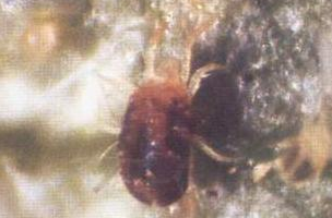 雌成螨:體長為0.34?0.46mm,體橢圓形,中部稍寬,后端略圓,大多數(shù)背部有6個不規(guī)則黑斑,部分有4個黑斑。
