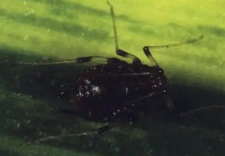 香蕉交脈蚜分為無翅蚜和有翅蚜兩種類型。無翅蚜體卵圓形,長0.8?1.6mm,紅褐色至黑色,額瘤明顯,尾片圓錐形,具瓦紋。有翅蚜體長卵形,長約1.7mm,頭、胸黑色,腹部紅褐色至黑色,頭頂兩側(cè)額瘤明顯。復(fù)眼紅棕色,觸角、腹管和足的腿節(jié)、脛節(jié)的前端呈暗紅色,觸角6節(jié),并在其上有若干個(gè)圓形的感覺孔,腹管圓筒形,前翅徑脈與中脈有段交會(huì)(故稱“交脈”),形成一個(gè)四邊形閉室,翅脈附近有許多黑色小點(diǎn)。前翅大于后翅。孤雌生殖,卵胎生,若蚜要經(jīng)過4個(gè)齡期以后,才變成有翅或無翅成蟲。