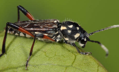 脊胸天牛(Rhytidodera bowringii White)屬鞘翅目天牛科。在我國和緬甸、印度尼西亞、印度腰果植區(qū)發(fā)生,是我國重要的腰果害蟲。除為害腰果外,還為害芒果、人面子等。脊胸天牛幼蟲蛀害腰果枝干,造成枝干枯死或折斷,使腰果植株長(zhǎng)勢(shì)減弱,嚴(yán)重時(shí)可導(dǎo)致植株死亡。