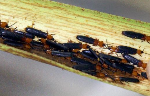 由于椰心葉甲取食未展開心葉的表皮,鉆入葉片中間,化學(xué)藥劑雖然速效性好,但不好接觸到害蟲,樹木高大時施藥又十分困難。化學(xué)防治還會帶來害蟲抗藥性、化學(xué)藥劑殘留等問題。當(dāng)椰心葉甲大發(fā)生的時候化學(xué)防治和物理防治方法都不能起到很好的效果。所以,從長遠(yuǎn)的角度來看,要想較好地控制椰心葉甲的為害,必須釆取以生物防治為主的辦法。