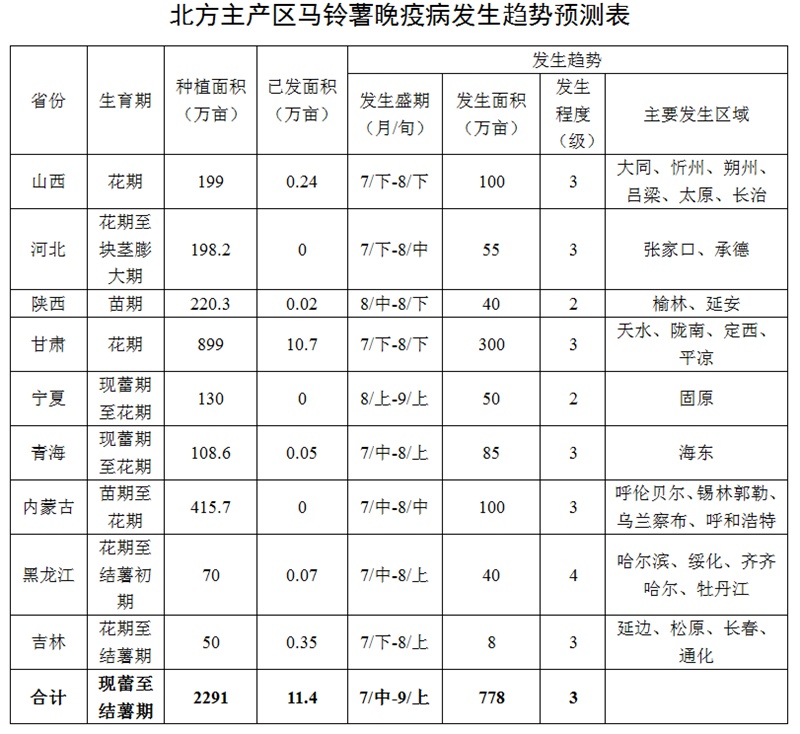 附件:北方主產(chǎn)區(qū)馬鈴薯晚疫病發(fā)生趨勢預(yù)測表