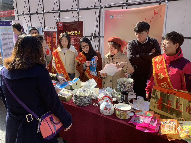 集團(tuán)團(tuán)委積極參加“青年文明號誠信示范月”活動,展示集團(tuán)風(fēng)采,宣傳企業(yè)品牌,提高團(tuán)干部素質(zhì),為弘揚(yáng)利和精神做貢獻(xiàn)。3月16日,按照團(tuán)中央和市委、市政府對于青年文明號工作的有關(guān)要求,經(jīng)集團(tuán)黨委批準(zhǔn),集團(tuán)團(tuán)委委員及團(tuán)委骨干共12人參加了團(tuán)市委在濱江道舉辦的“青年文明號誠信示范月”——青年文明號集中服務(wù)日活動?;顒又?,團(tuán)委委員及骨干緊密圍繞活動主題,充分展示利和集團(tuán)的良好形象,向廣大市民詳細(xì)介紹了企業(yè)的發(fā)展歷程,積極宣傳集團(tuán)經(jīng)營的各類商品,耐心解答消費(fèi)者提出的各種問題,得到了團(tuán)市委、各參展單位及廣大市民的一致好評。在近三個小時的展示活動中,集團(tuán)展位共接待市民近千人次,場面異?;鸨?,成為活動中最受歡迎的展位之一。