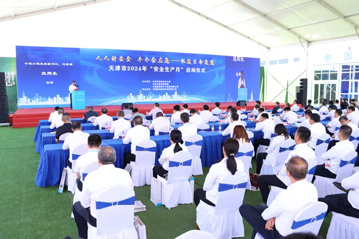 在天津市“安全生產(chǎn)月”活動啟動會議上,發(fā)布了由市安委會辦公室、市應(yīng)急管理局策劃制作的《人人講安全、個個會應(yīng)急——暢通生命通道》和《致敬安全守護者》主題宣傳片,部署了“安全生產(chǎn)月”重點工作任務(wù)。啟動儀式上,視頻連線了中建六局分會場活動,現(xiàn)場向中建六局應(yīng)急搶險隊伍進行了授旗,全場人員集中開展了安全生產(chǎn)宣誓,企業(yè)員工結(jié)合工作實際演繹了“班前會”情景劇,并開展了火災(zāi)事故應(yīng)急救援演練。