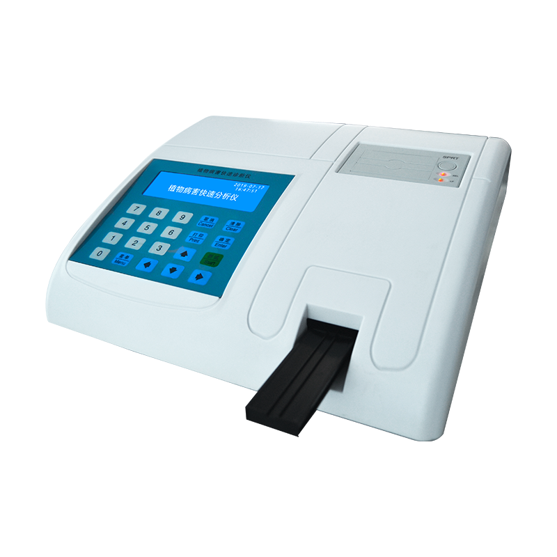 細(xì)菌、真菌和病毒是引起農(nóng)作物病害的主要原因。這些病害微生物一般通過莖、葉、根系、果實(shí)等侵染植物,大部分病害在染病初期雖能較易防治,但一般不易被人察覺,病害一量發(fā)生,防治不僅困難而且效果較差,致使農(nóng)作物減產(chǎn),甚至絕收。如何在病害發(fā)病初期進(jìn)行檢測(cè)和及時(shí)防治,對(duì)防治病害的發(fā)生尤為重要。植物病害的檢測(cè)是一種復(fù)雜的化學(xué)和物理過程,從實(shí)驗(yàn)室走入實(shí)際應(yīng)用一直是人們追求的目標(biāo),鄭州歐柯奇儀器制造有限公司研制的植物病害快速分析儀對(duì)指導(dǎo)農(nóng)戶用藥開創(chuàng)了新紀(jì)元,該儀器能夠快速分析確定各種農(nóng)作物病害的種類,為如何防治病害及用藥提供了科學(xué)理論依據(jù),為農(nóng)場主和農(nóng)戶帶來了極大的便利。二、檢測(cè)原理