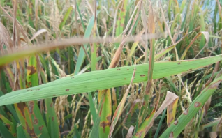 (4)褐點(diǎn)型:病斑呈褐色小斑點(diǎn),局限于葉脈之間,多發(fā)生于抗病品種或稻株下部老葉上,無霉層。