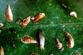 幼、若螨:幼螨初期體裸露,有光澤。若螨黃褐至紫褐色,近菱形,開始被白色蠟絮,后體段環(huán)紋不明顯,體長為0.05?0.10mm。