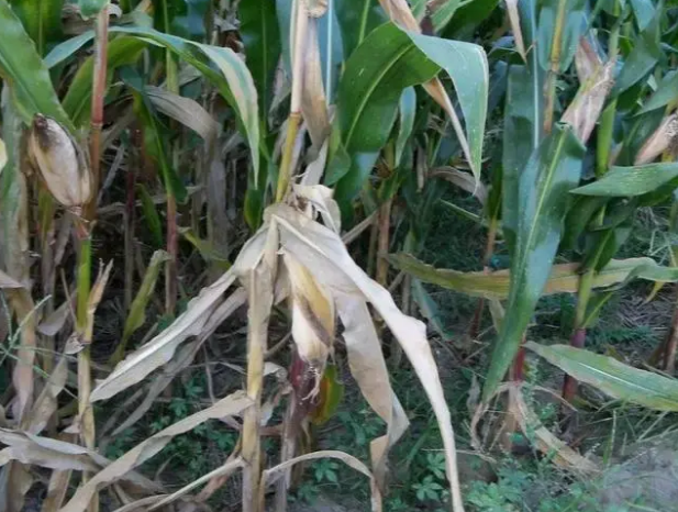 2.氣象因素 玉米灌漿至成熟期的氣象因素,特別是降雨量與發(fā)病的關(guān)系密切。如玉米散粉期至乳熟初期遇大雨、雨后暴晴的天氣時,發(fā)病重;久雨乍晴,氣溫回升快,植株易產(chǎn)生青枯癥狀。夏玉米生長前期干旱、中期多雨、后期溫度偏高的年份,發(fā)病較重。
